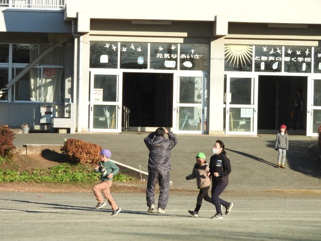 業前休みの鶴二小の校庭です。 今日も、子どもたちに、応援され、励まされ、目標周回+1周(毎日、コツコツ走っていたら、+1周することができるようになりました。)を走ることができました。 今朝は寒かったので、霜柱や霜や氷が張っていて、子ども達が「ここにも」「あそこにも」と教えてくれました。 学級運営補助員の先生方も子どもたちと元気に走ってくださっています。 毎週末、鶴二小から地域に走り出しているランニングクラブの皆さん(環境整備活動もお手伝いしてくださっています。)が、持久走大会当日、子どもたちと並走してくださることになりました。 みんなで作る持久走大会。楽しみですね。