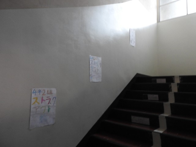 子どもたち、先生方、保護者&地域の皆さんで「美しい汗」を流しながら、ペンキを塗った南校舎の壁に、鶴二っ子たちの行事の活動画像や作品が掲示されています。 未来の鶴二っ子たちへ、現代の鶴二っ子たちがメッセージを残しながら、鶴二小の伝統を引き継いでいってほしいと願いが込められています。 鶴二小祭りのポスターが南校舎の美しい壁面に彩を添えてくれていました。なかよし学級の子どもたちが作った大型掲示物も掲示されています。 鶴二小バージョンアップ計画はまだまだ続きます。