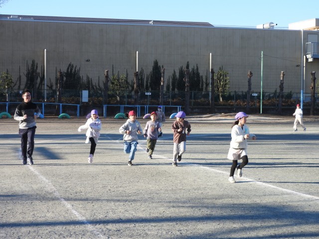 登校見守りから鶴二小の校庭に戻ると、業前休みの時間に、子どもたちが校庭に飛び出してきました。 夏休み頃から、練習を続けている4年生の男の子が、特別コース(自分たちで考えたそうです。)を走り込んでいました。 いつも校長室に遊びにきて(最近、持久走大会の練習に一生懸命でなかなか校長室に来てくれないのでさびしい校長です。)色々なお話をしてくれるなかよし学級の男の子も毎日、コツコツと自分のペースで練習を続けています。 今日は、久しぶりに働きものの教務主任の先生も子どもたちと一緒に走ってくださいました。 子どもたちが「わぁ。U先生だ。負けないぞぉ~。」ととても大喜びでした。 継続は力なりですね。