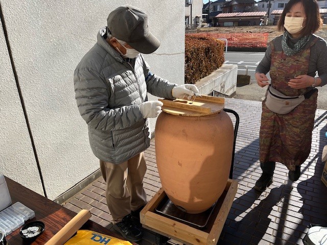 どんぐり朝市が開かれている南市民センターの外に、こんな壺(つぼ)が置いてありました。