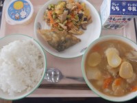 7月16日は今年度1学期の給食最終日でした。豚汁に鯵の辛味焼きと和食メニューです...