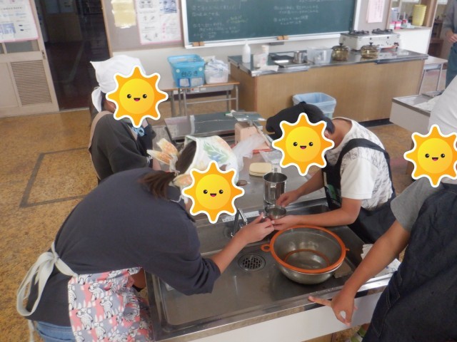 5年生が調理実習に取り組んでいました。5年生は「ごはんとみそ汁」をそれぞれ作ります。グループでどんな実(具)にするか話し合い、調理に取り掛かります。米の重さを量り、水の量を計算していきます。先生もすべ...