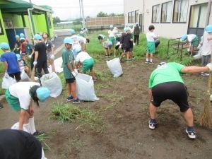 取った草を集め袋に入れると、その重さに驚いた様子の子どもたち が何名もいました 。
