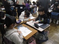 6年2組の算数の時間に研究授業を行いました。 市内小・中学校の先生方が多数参観される中、「比例」の学習に取り組みました。 「画用紙300枚を数えずに用紙するにはどうすればよいか?」について、表や式、...