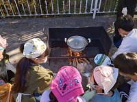 東炊事場へ移動し、カレー作りのスタートです。 かまど班と調理班に分かれ、チームワークよくカレーを作ります。 どんなカレーができるのか楽しみです!