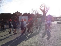 校庭に雪が残る中、体育朝会を実施しました。 寒さをものともせず、子どもたちが校庭に出てきました。 長縄8の字跳びで何回跳べるのか、各クラスで目標を立てて取り組んで聞きました。 クラス一丸となり取り組...
