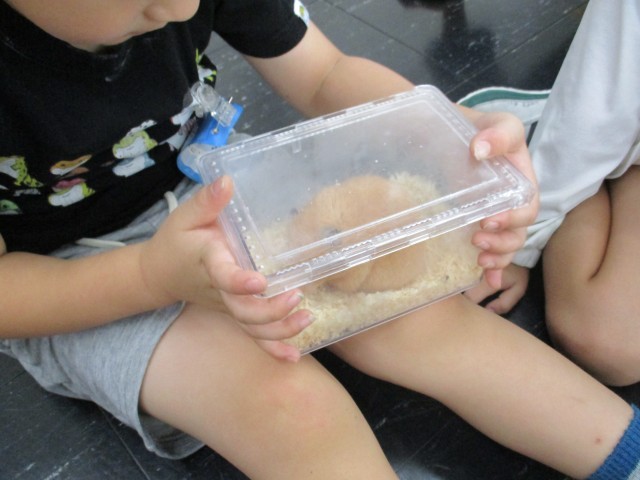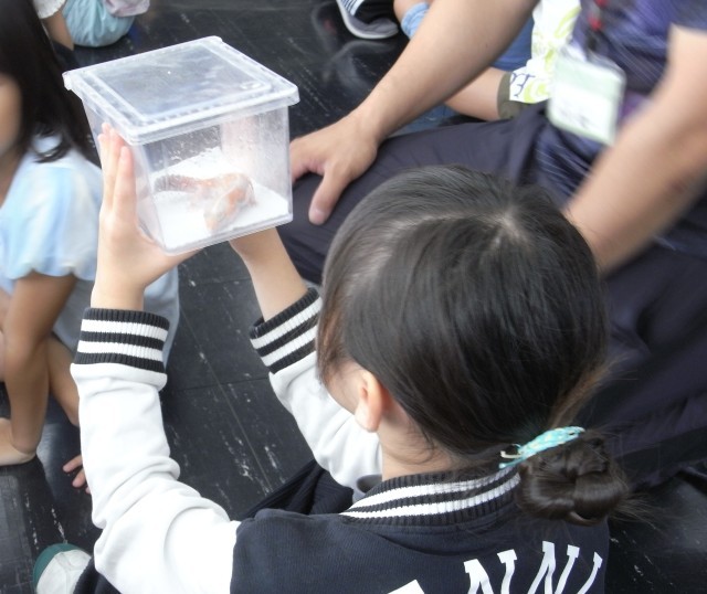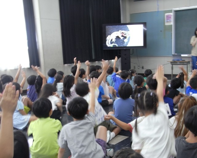 生活科「いきものとなかよし」の授業に、ゲストティーチャーをお迎えしました。前半はクイズを通して、いきものについて楽しく学び、後半は実際に観察をしながら、ヒトといきものの「似ているところ」や「違うところ」をみんなで探しました。子どもたちは、興味津々で、いきものとのふれあいを楽しんでいました。