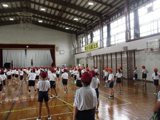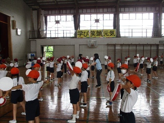 様子を見に行くと、3・4年生の子どもたちが運動会の練習を行っていました。