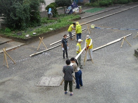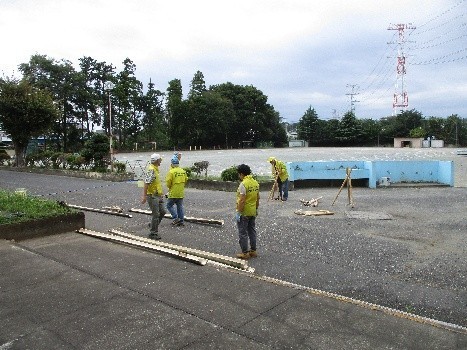 朝早くから、里山サポートクラブの皆さんや保護者の皆さんにお手伝いをいただき、着々と準備が進んでいます。