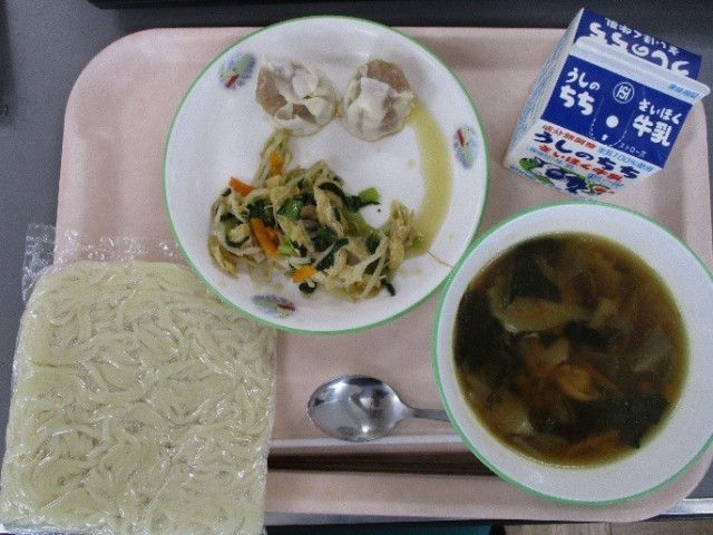 メニューは、中華麺・牛乳・しょうゆラーメン・シューマイ・油揚げと野菜の和え物の5品です。