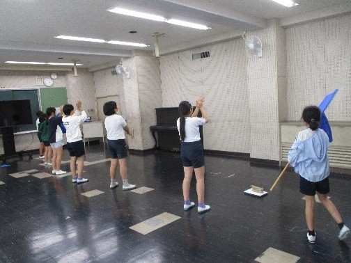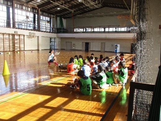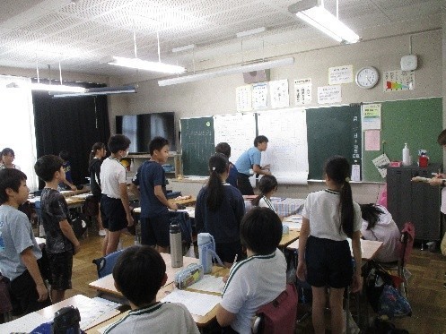 5・6年生の子どもたちは、組体操練習後に運動会の係打ち合わせです。