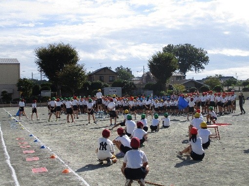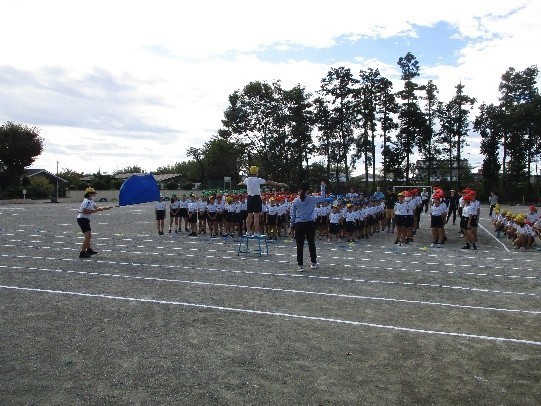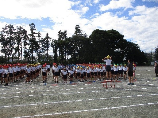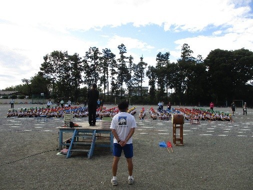 10月11日(土)の運動会に向け、全校での第1回運動会全体練習を行いました。
