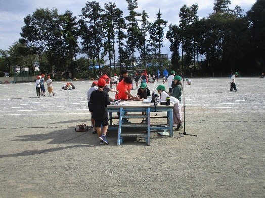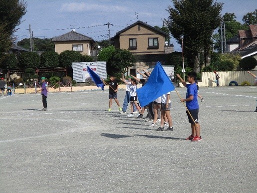 本日の6時間目に、5・6年生の子どもたち、本校の教職員、PTA本部役員の皆さんとともに運動会の前日準備を行いました。