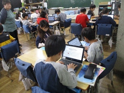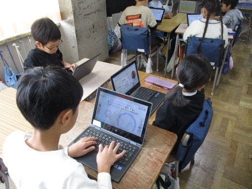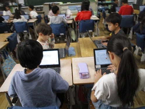 朝の時間に3年生の教室をのぞくと、子どもたちが集中してタブレットに向かっています。