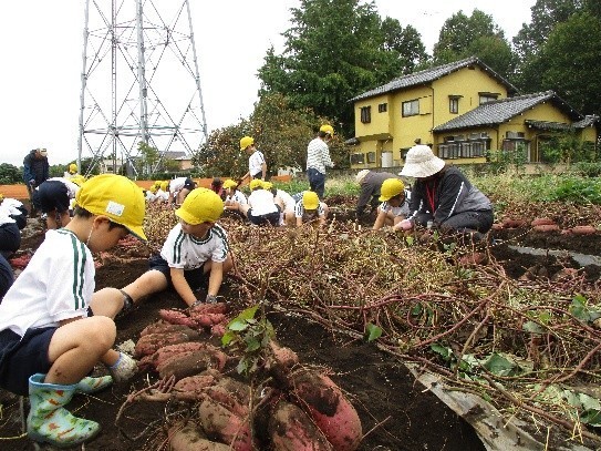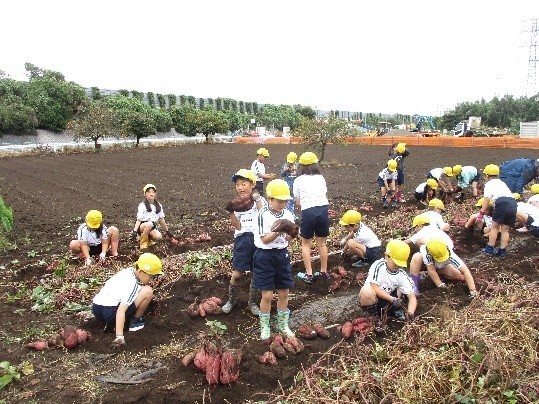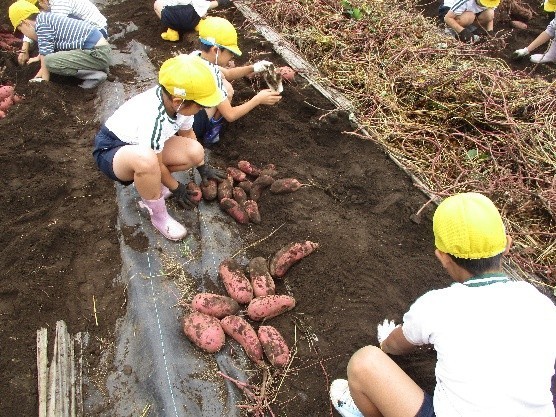 子どもたちは夢中になって、土を掘り起こし、大きなサツマイモをゲットしていました。