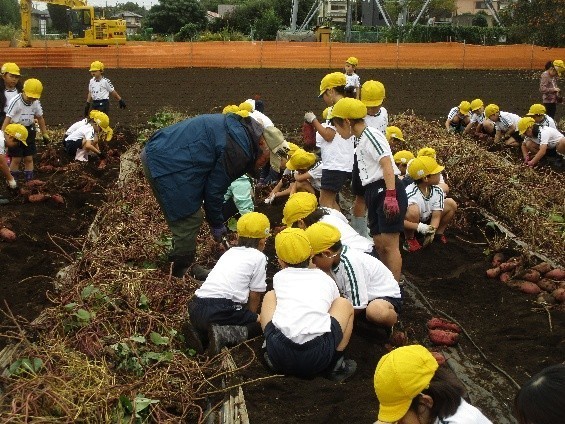 学校応援団の松本さんの畑をお借りし、これまで育ててきたサツマイモを収穫しました。