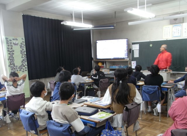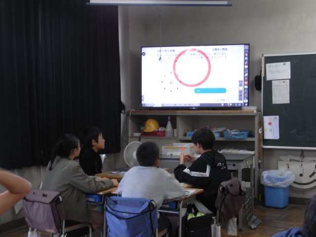 6年生の理科「月と太陽」の授業の1コマです。授業の冒頭に端末(タブレット)を使って、前回の学習内容を振り返ります。子どもたちが自分の考えを確認した後、正解を確かめながら理解を深め、今日の新しい学びへとつなげていきます。