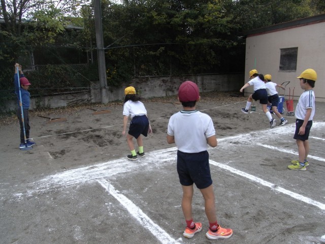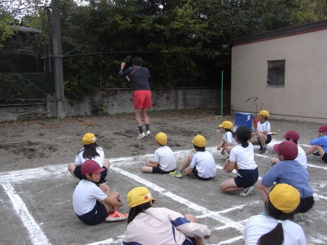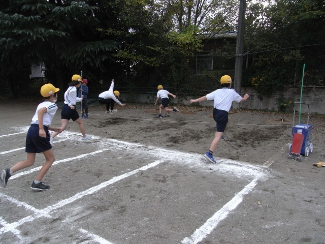 幅跳びの授業の一場面です。「なぜ、走り幅跳びでは片足で踏み切って飛ぶほうが良いのか」について、自らの体験から考察するとともに、立ち幅跳びと走り幅跳びの両方を実践して、納得のいく答えを導き出していました。