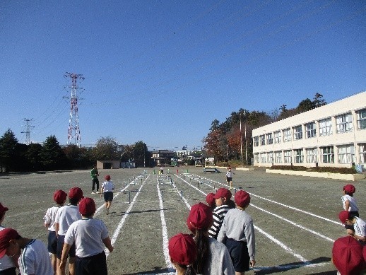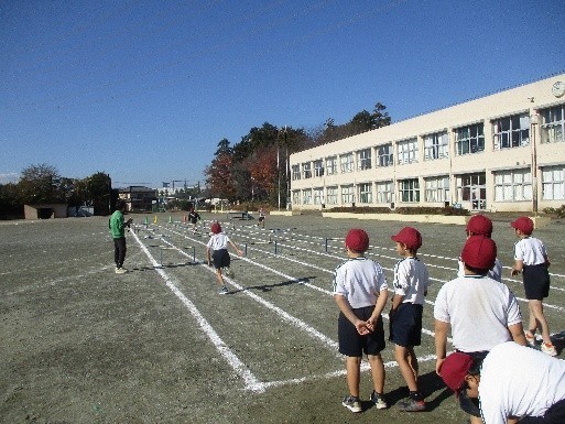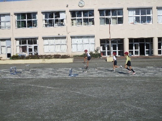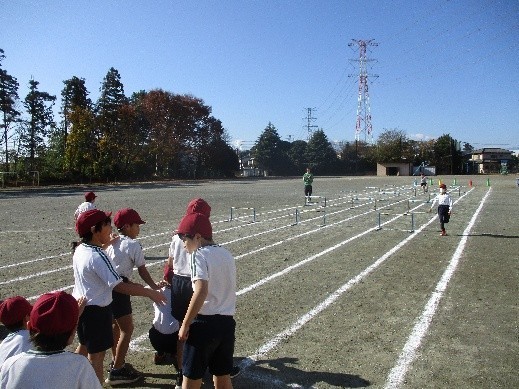 4年生の体育では、小型ハードル走に取り組んでいます。