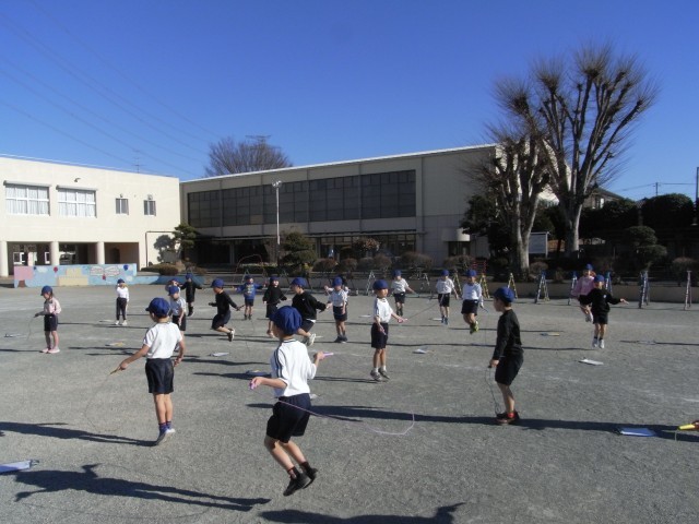 今日は、両足跳びと後ろ両足跳びにチャレンジ。子どもたちは、上手に跳んでいる友達の様子を観察しながら、「そうか!足がそろってる!」「手の場所がおんなじだ!」といった気付きの声をあちらこちらで上げてました。どの子も自分の目標に向かって一生懸命取り組んでいます。