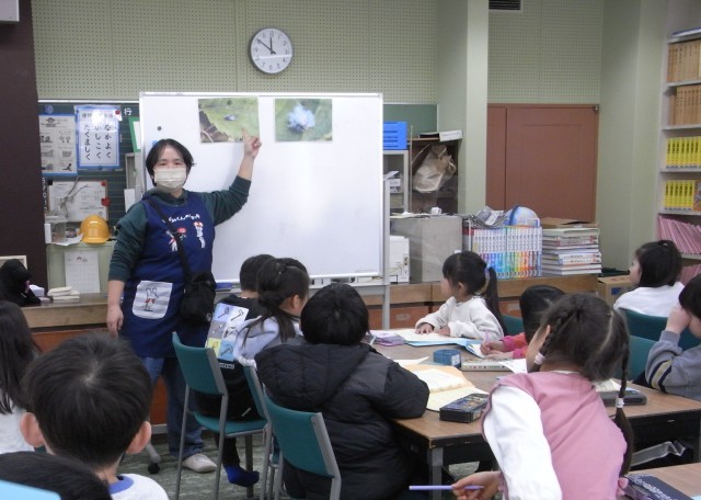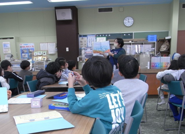 授業の始めに、学校図書館司書の読み語りを行います。