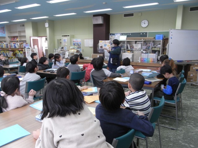 1年生の国語(図書)の授業風景です。