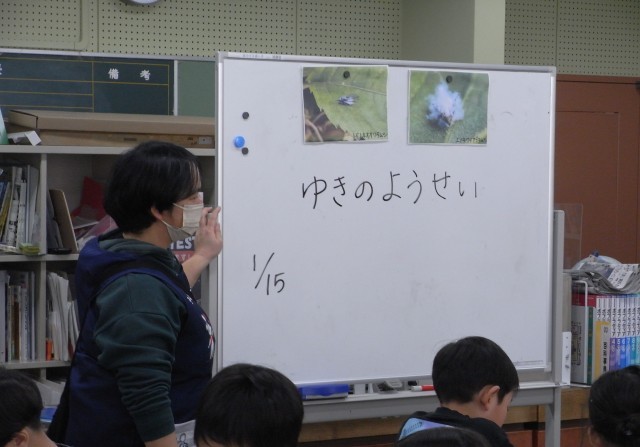 今日は「ゆきのようせい」という話でした。子どもたちは目を輝かせながら、静かに耳を傾けていました。