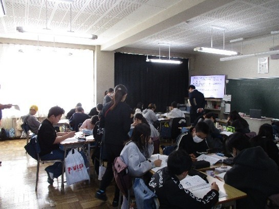全ての学年・学級で5時間目の授業を公開し、藤中学校と富士見中学校の先生方に参観していただきました。