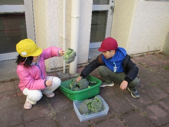 今日は、なかよしの子どもたちがブロッコリーを収穫していました。
