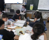 3年生の社会科の学習の一環として、民具を使った体験学習を行いました。