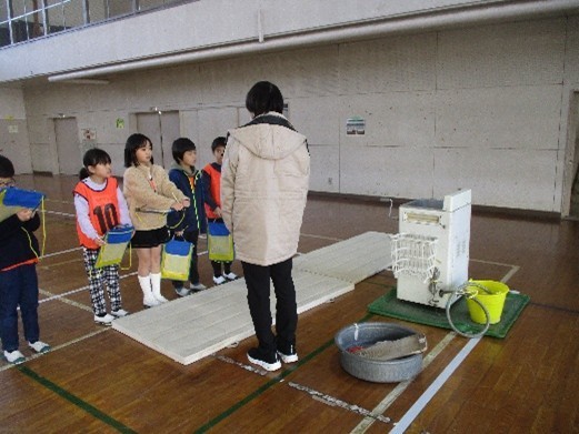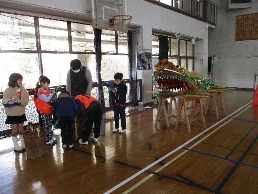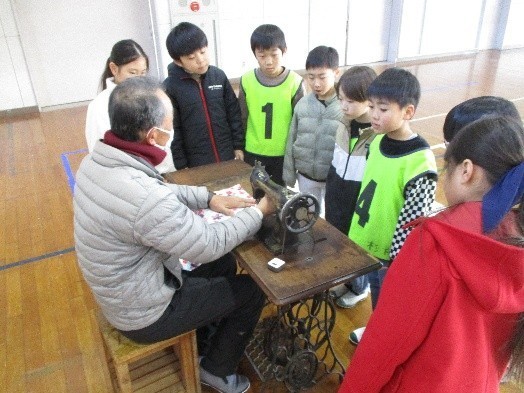 鶴ヶ島市文化財整理室の方々が、昔のお釜やミシン、洗濯機、ミニ龍蛇を体育館まで持ってきていただき、実際に見たり、聞いたり、触ったり、体験したりしました。