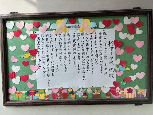 学校の掲示板を2月バージョンに衣替えです。職員玄関や階段の掲示物がにぎやかになりました。