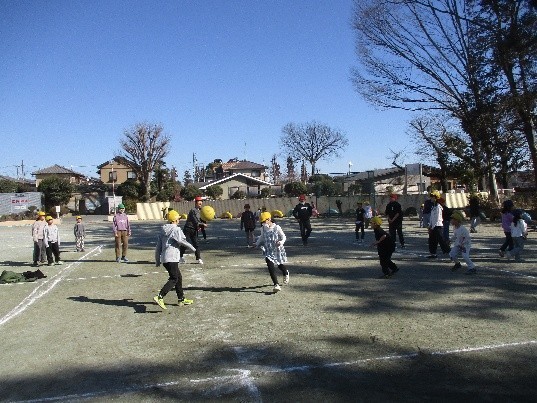 室内遊びグループは、バケツたたきやイス取りゲームを、外遊びグループは、鬼ごっこやドッヂボールを楽しみました。