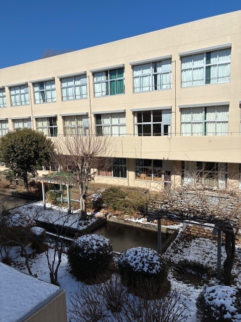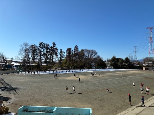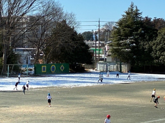 雪の残る校庭で