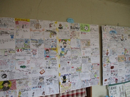 本の森(図書室)の廊下には、子どもたちの力作が掲示されています。