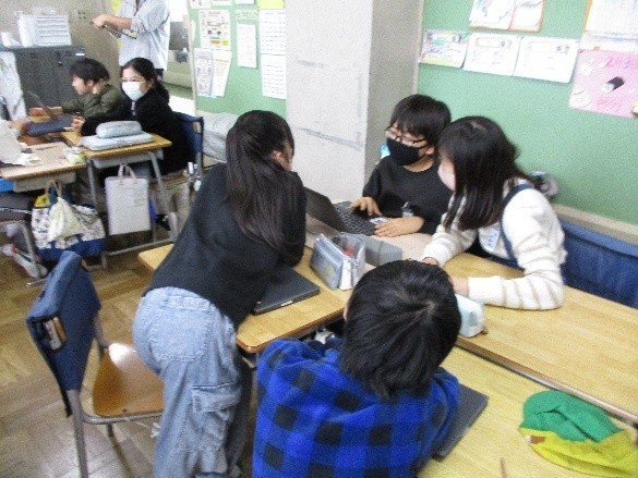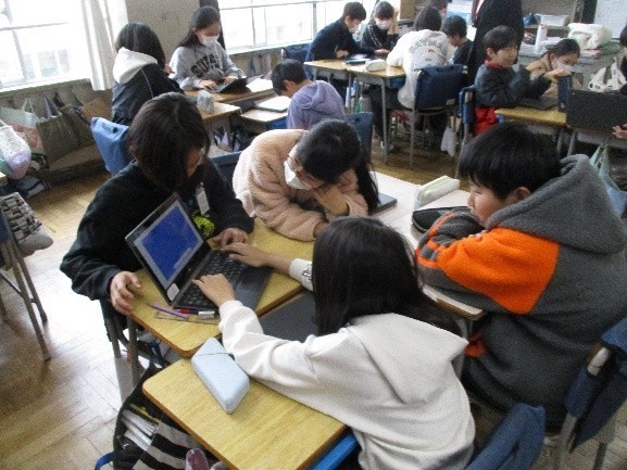 子どもたちは、6年生に向けて、期待することと不安なことに分けて、タブレットに打ち込み、クラス全体で共有します。