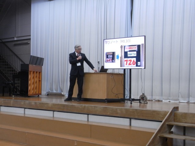 今年度最後のお話朝会を行いました。校長先生からは、学びノートを3冊達成した児童が726人にのぼることが紹介され、子どもたちの努力が称えられました。また、校長先生が大事にされてきた「命・人・心・もの」への思いについてもお話があり、杉下小の子どもたちにも、それらを大事にしながら学校生活を送ってほしいという願いが語られました。