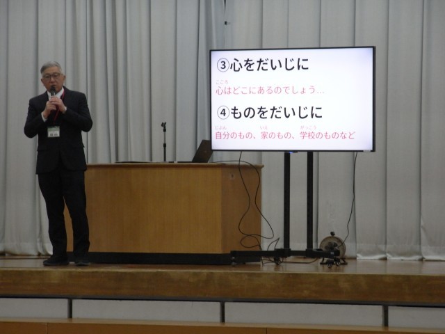 さらに、今月の生活目標については、5年生の代表児童が全校児童に向けて発表しました。低学年の子にも伝わるように、話すスピードを工夫し、来年度は最高学年として杉下小を引っ張っていくという自覚をもって、堂々とした姿で発表していました。