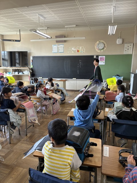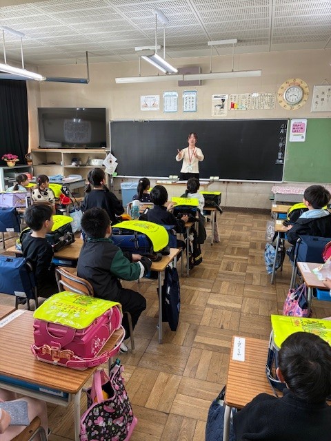 1年生の教室では、担任の先生のお話を一生懸命に聞く子どもたちの姿が見られました。