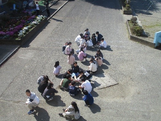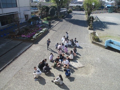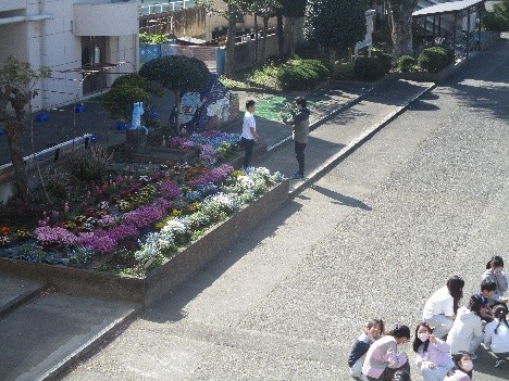 校長室の窓から外をのぞくと、6年生の子どもたちがクラス写真の撮影をしていました。