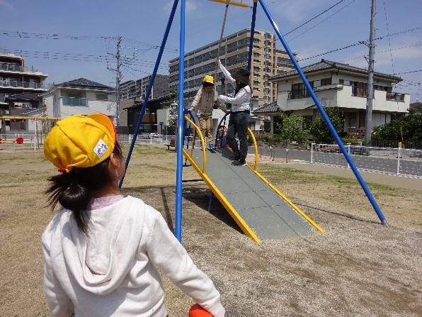 若葉駅近くの公園には、学校にはない遊具がたくさんあります。