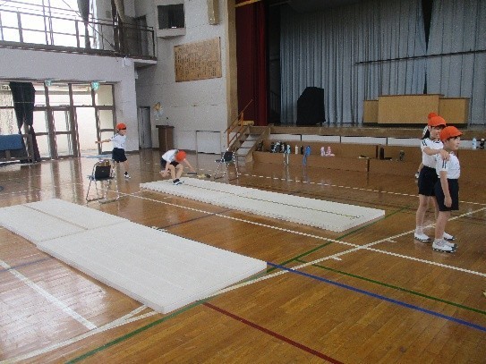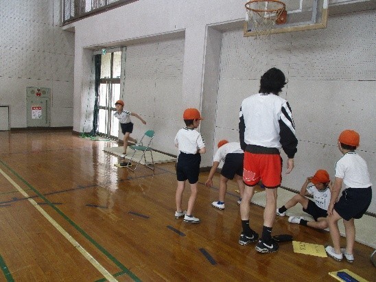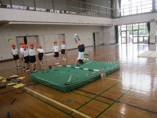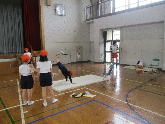 「体を丸くするといいよ!」「もう少し勢いがあるといいよ!」など子どもたちはアドバイスをし合いながら、一生懸命に取り組んでいました。