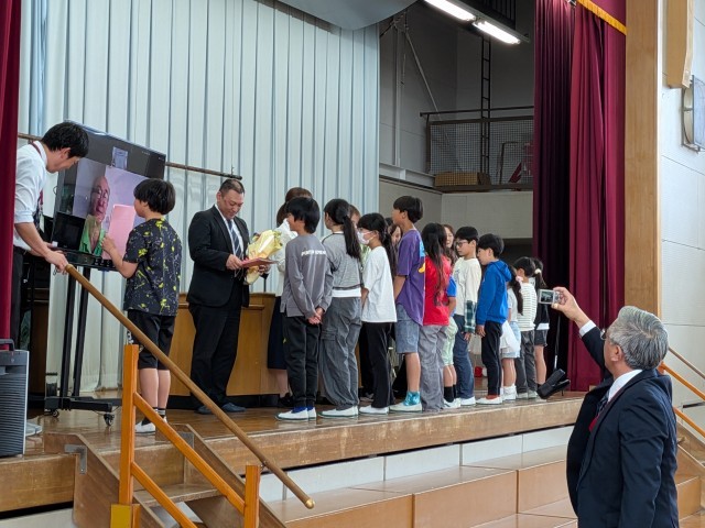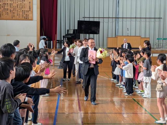 4月24日(金)に離任式を行いました。杉下小学校を転出した教職員と顔を合わせてお別れをしました。