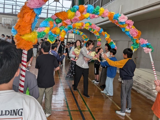 お世話になった先生に、お手紙と花束、そして歌のプレゼントをしました。