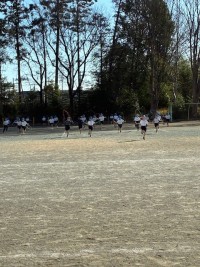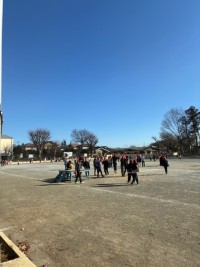 5時間目の校庭では、2年生の子どもたちが元気に体育の学習を行っています。 1月にしてはとても温かく、運動日和です。 短縄で汗をかいた後は、大縄でチームワークを高めます。