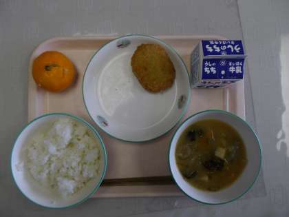 今日の給食 公開日 2022/07/05 更新日 2022/07/05 学校日記 今日の給食は ・ごはん ・具だくさんみそ汁 ・野菜コロッケ ・冷凍みかん ・牛乳 でした。エネルギーは640キロカロリーでした。