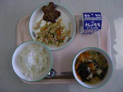 今日の給食 公開日 2022/07/07 更新日 2022/07/07 学校日記 今日の給食は ・ごはん ・七夕汁 ・星形ハンバーグ ・五目ごはんの具 ・牛乳 でした。エネルギーは640キロカロリーでした。