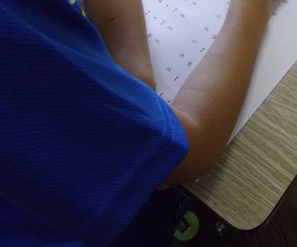 計算に取組み中です。話声はありません。鉛筆が動く音だけが聞こえます。短い時間みんな集中しています。