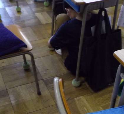 実施です。緊急地震速報が放送され、全校児童が机の下に避難しました。