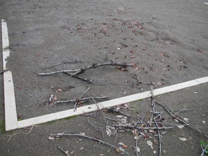 学校では強風により木々の枝が折れました。